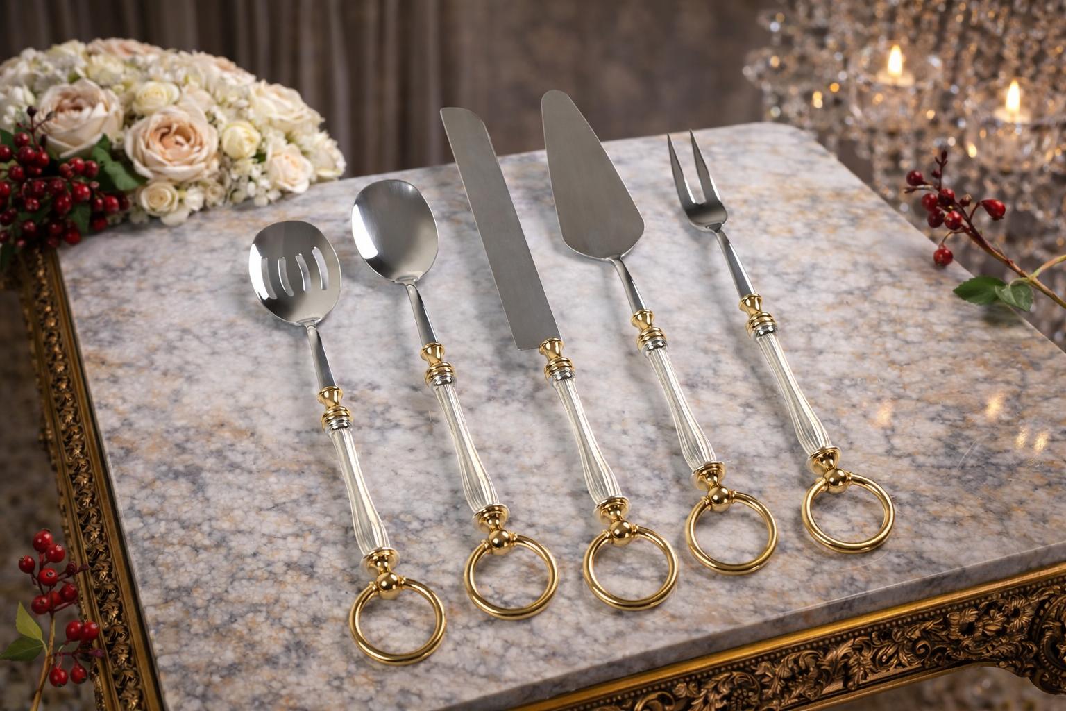 5 Piece Premium Serving Utensil Set with Decorative Ring Handles